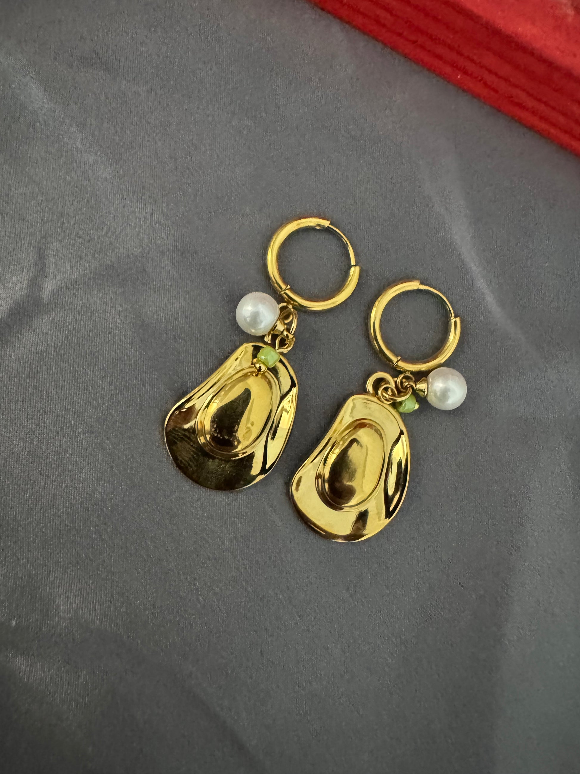Add a touch of charm and character to your jewelry game with the Daisy Drop Earrings. Featuring a sculpted gold-tone hat pendant, accented with a glossy faux pearl and delicate green bead — these earrings are a statement of style and whimsy.